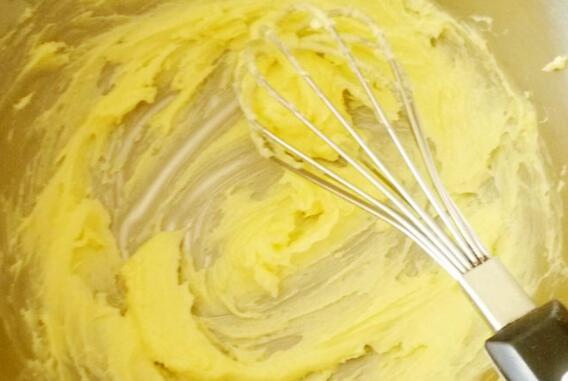 5. 发酵的时候可以做椰蓉馅,黄油软化,加入细砂糖。用打蛋器顺一个方向搅打至顺滑。
